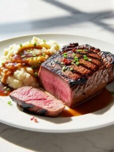 7.1. Serve the grilled steaks alongside a generous scoop of creamy garlic mashed potatoes.
